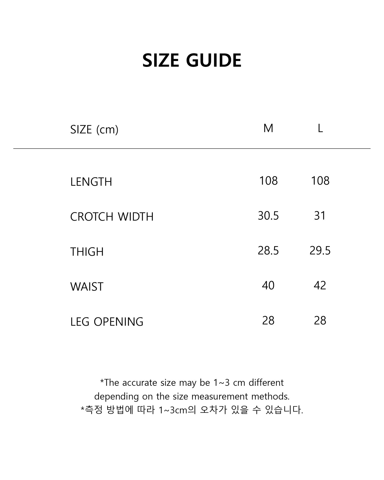 - 제품 공정 과정 중 발생할 수 있는 초크 자국, 실밥, 미세한 실측 차이, 패턴 불규칙 등은 불량으로 간주되지 않습니다.