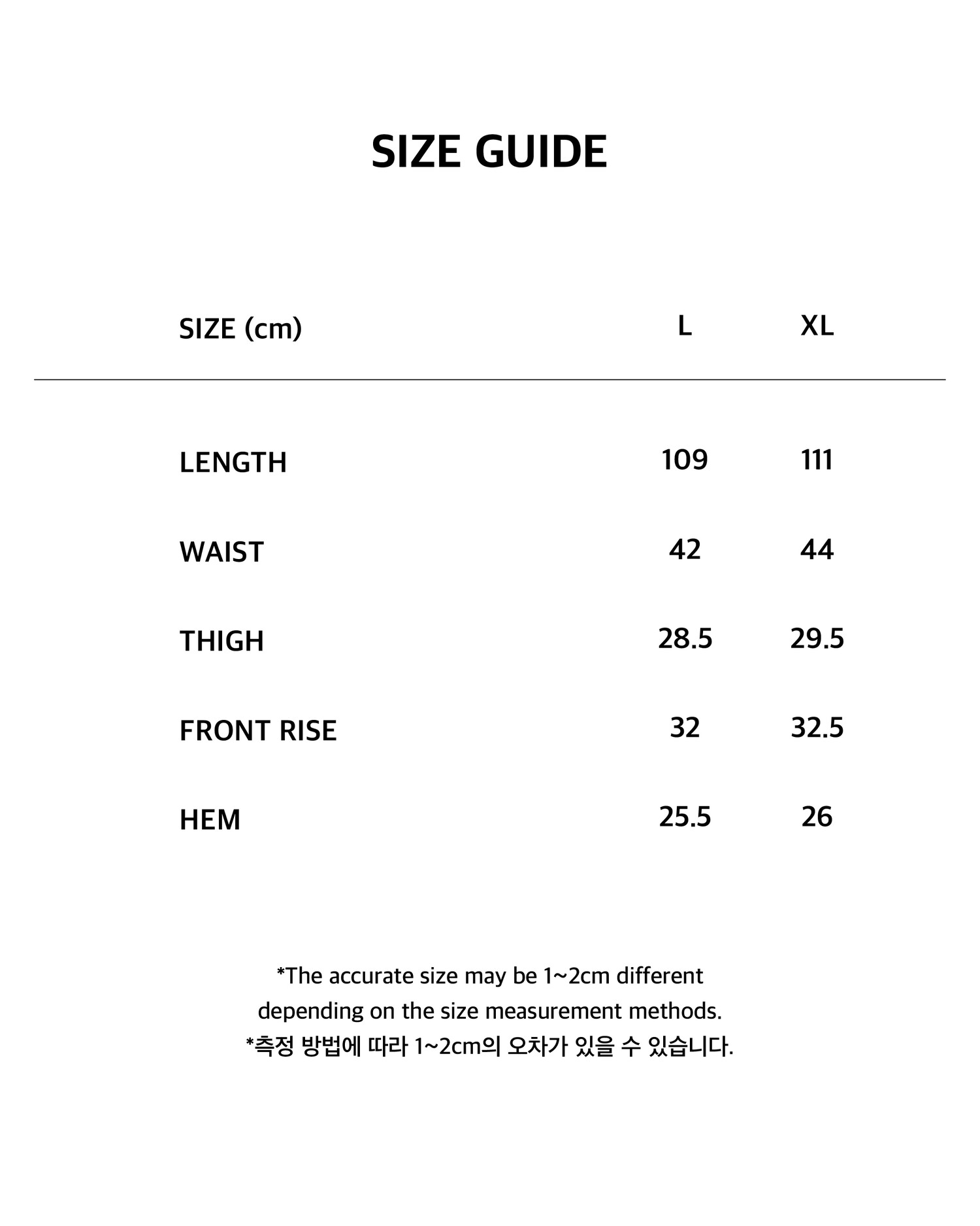 - 제품 공정 과정 중 발생할 수 있는 초크 자국, 실밥, 미세한 실측 차이, 패턴 불규칙 등은 불량으로 간주되지 않습니다.
