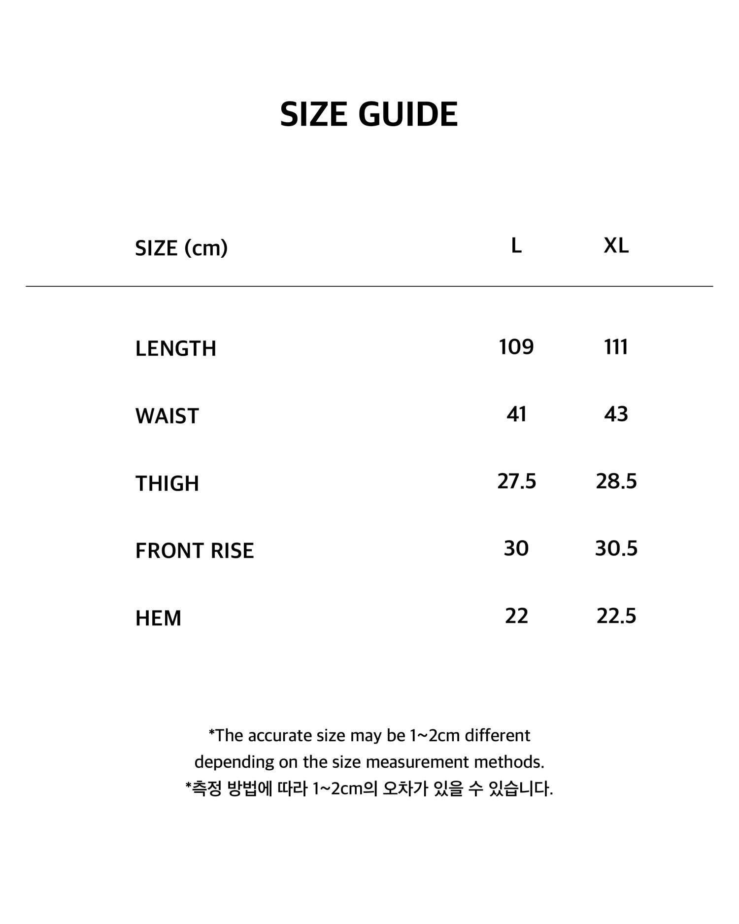- 제품 공정 과정 중 발생할 수 있는 초크 자국, 실밥, 미세한 실측 차이, 패턴 불규칙 등은 불량으로 간주되지 않습니다.