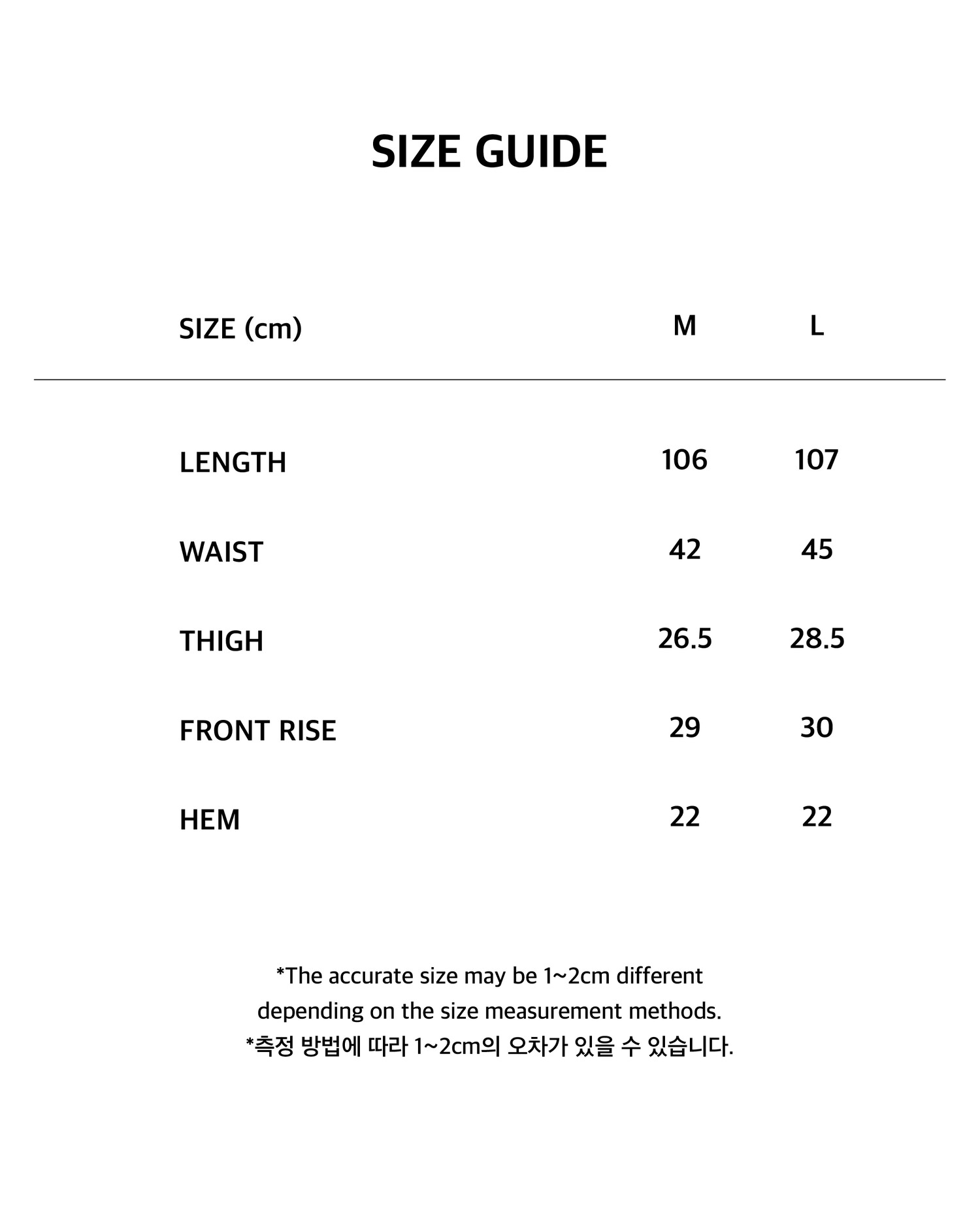 - 제품 공정 과정 중 발생할 수 있는 초크 자국, 실밥, 미세한 실측 차이, 패턴 불규칙 등은 불량으로 간주되지 않습니다.